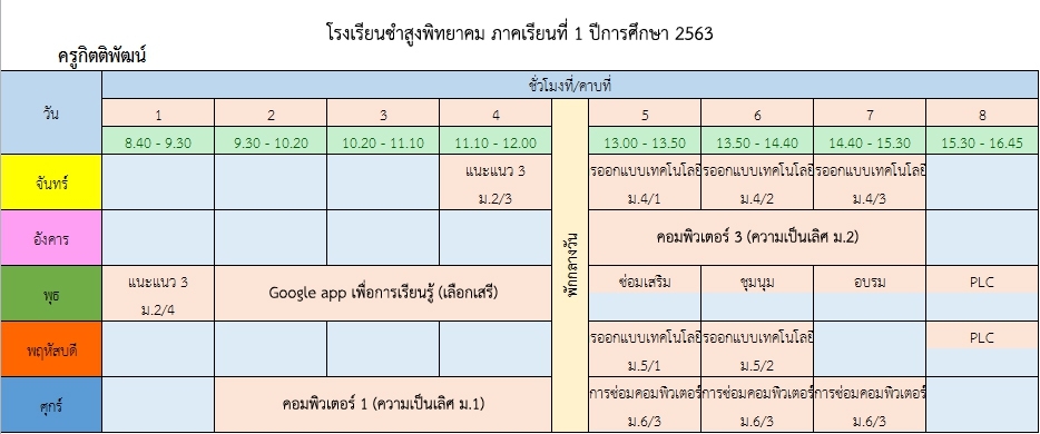 ชื่อวิชา ห้องเรียน รหัสเข้าห้องเรียน หมายเหตุ