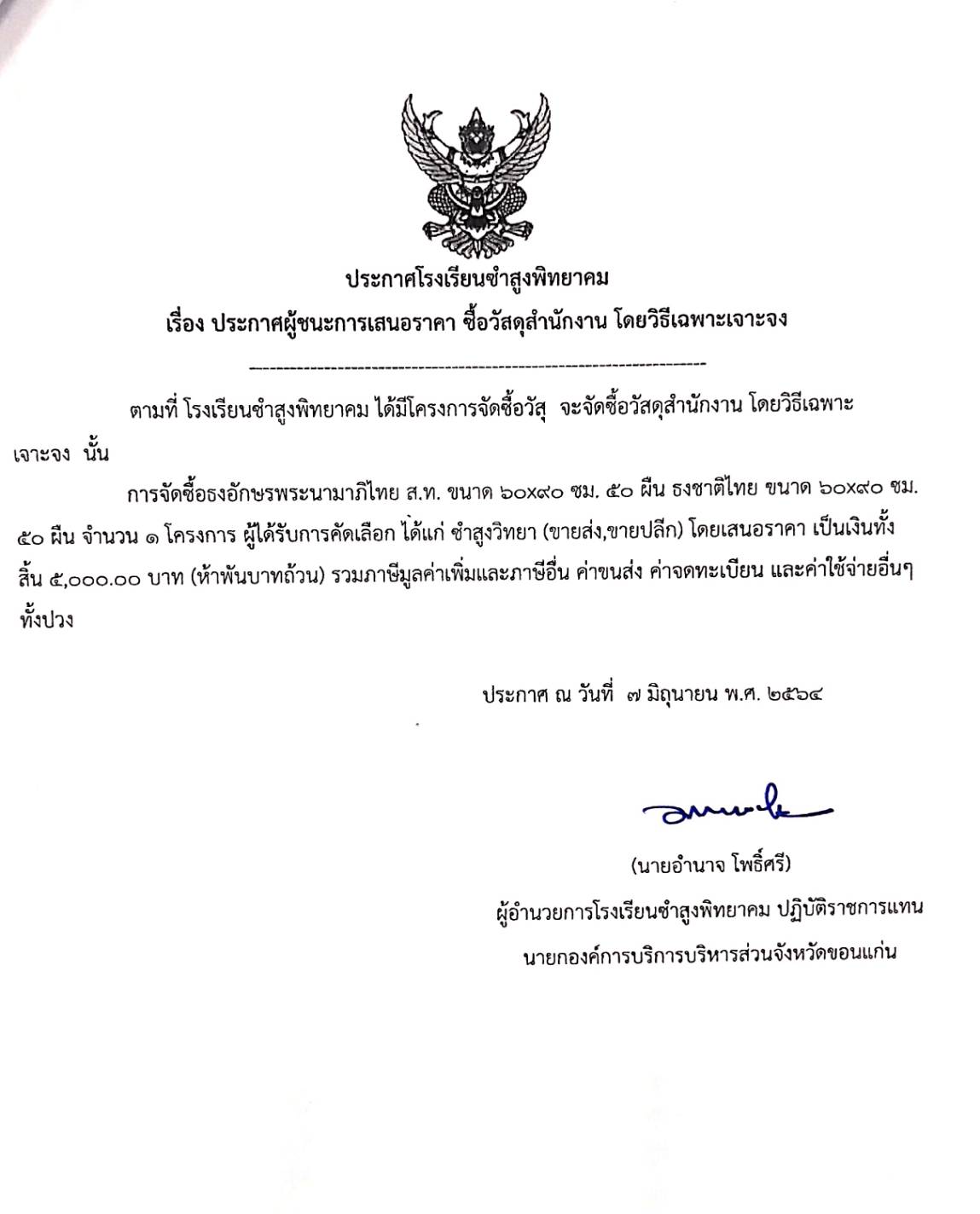 ประกาศผู้ชนะการเสนอราคา ซื้อวัสดุสำนักงาน โดยวิธีเฉพาะเจาะจง