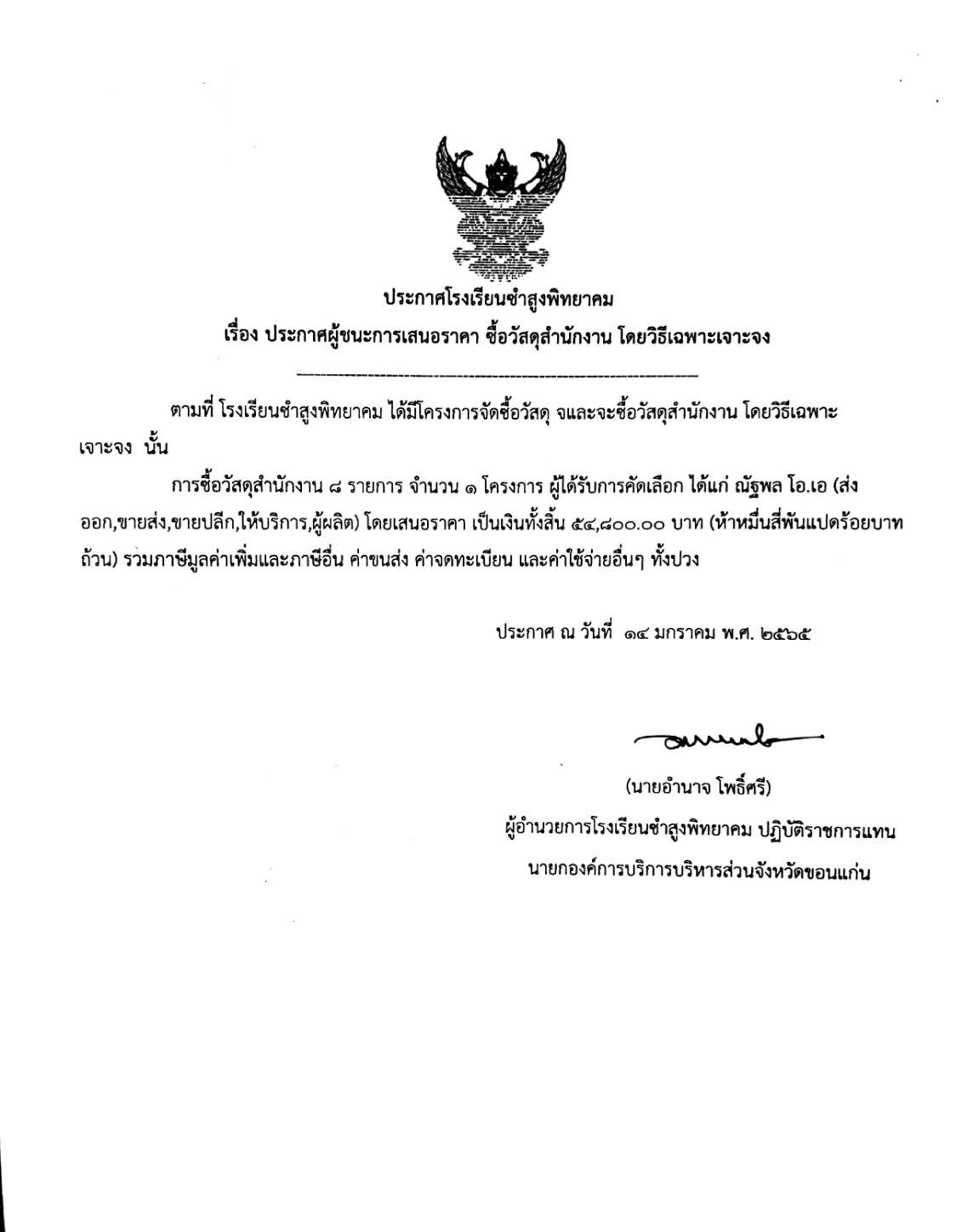 ประกาศโรงเรียนซำสูงพิทยาคม เรื่อง ประกาศผู้ชนะการเสนอราคา ซื้อวัสดุสำนักงาน โดยวิธีเฉพาะเจาะจง