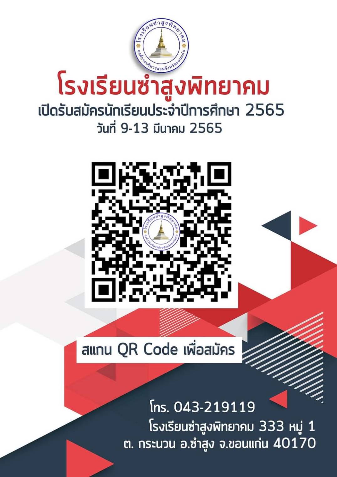 QR Code รับสมัครนักเรียนชั้นมัธยมศึกษาปีที่ 1 และ 4