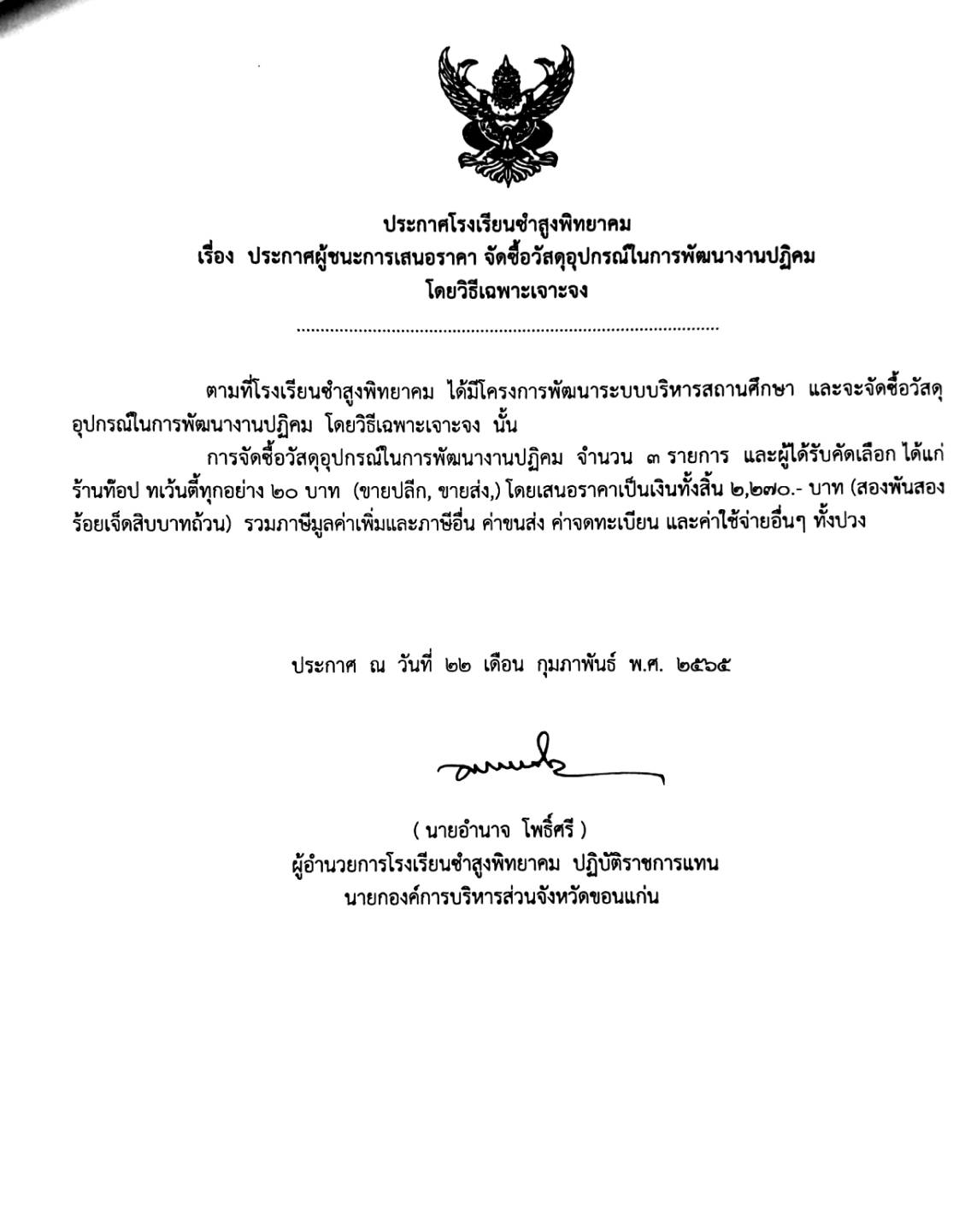 ประกาศโรงเรียนชำสูงพิทยาคม เรื่อง ประกาศผู้ชนะการเสนอราคา จัดซื้อวัสดุอุปกรณ์ในการพัฒนางานปฏิคม โดยวิธีเฉพาะเจาะจง