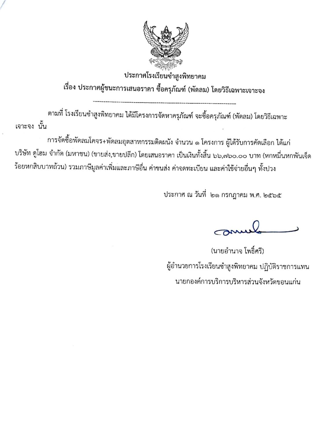 ประกาศโรงเรียนซำสูงพิทยาคม เรื่อง ประกาศผู้ชนะการเสนอราคา ซื้อครุภัณฑ์ (พัดลม) โดยวิธีเฉพาะเจาะจง