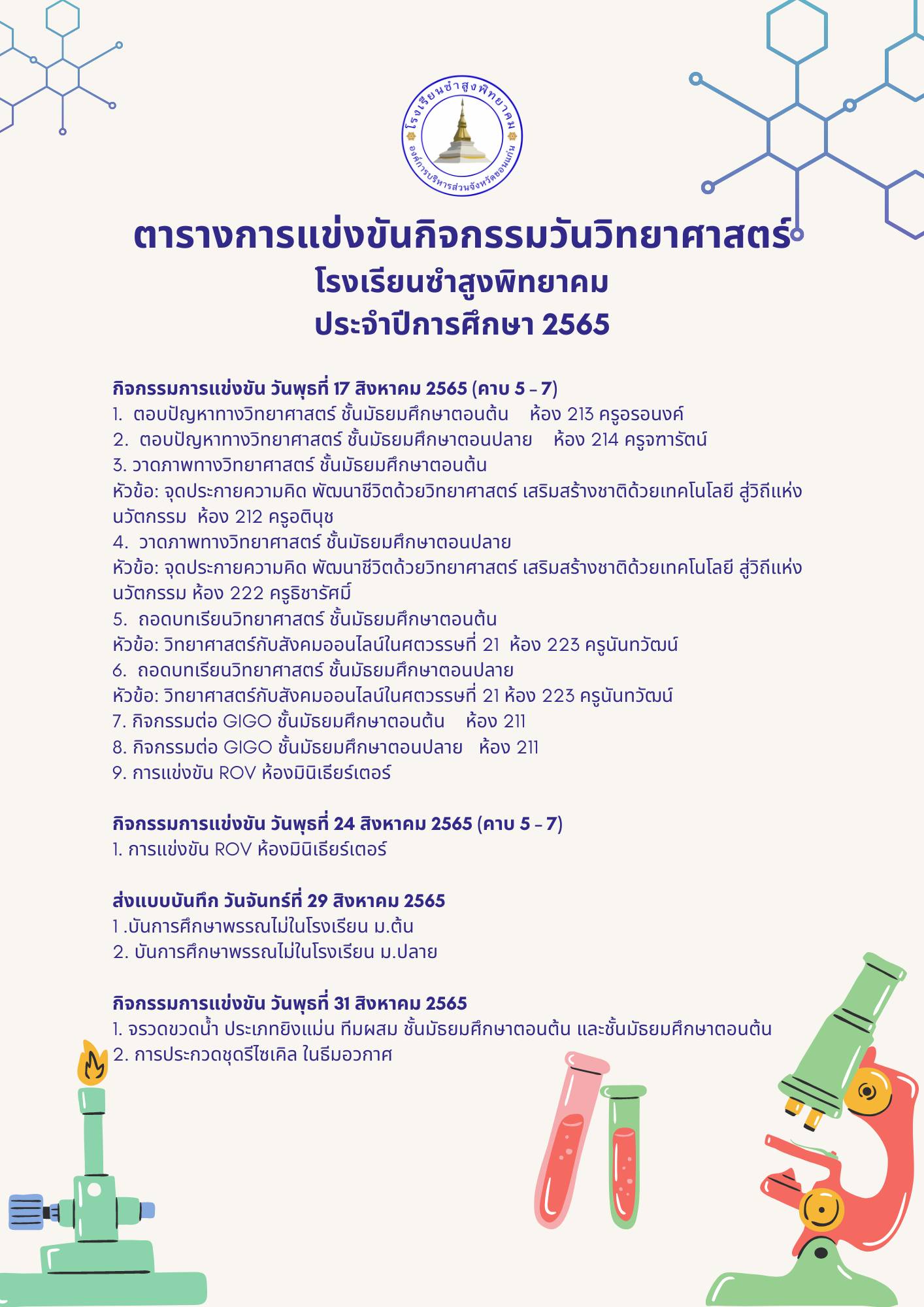 ตารางการแข่งขันกิจกรรมวันวิทยาศาสตร์ โรงเรียนซำสูงพิทยาคม ประจำปีการศึกษา 2565