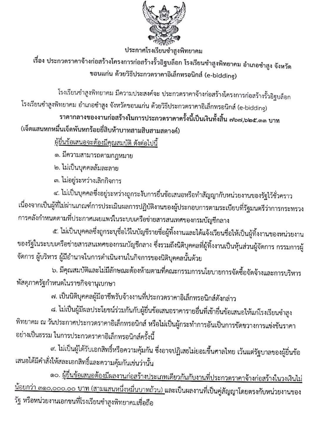 ประกาศโรงเรียนชำสูงพิทยาคม เรื่อง ประกวดราคาจ้างก่อสร้างโครงการก่อสร้างรั้วอิฐบล็อก โรงเรียนชำสูงพิทยาคม อำเภอซำสูง จังหวัด ขอนแก่น ด้วยวิธีประกวตราคาอิเล็กทรอนิกส์ (e-bidding)