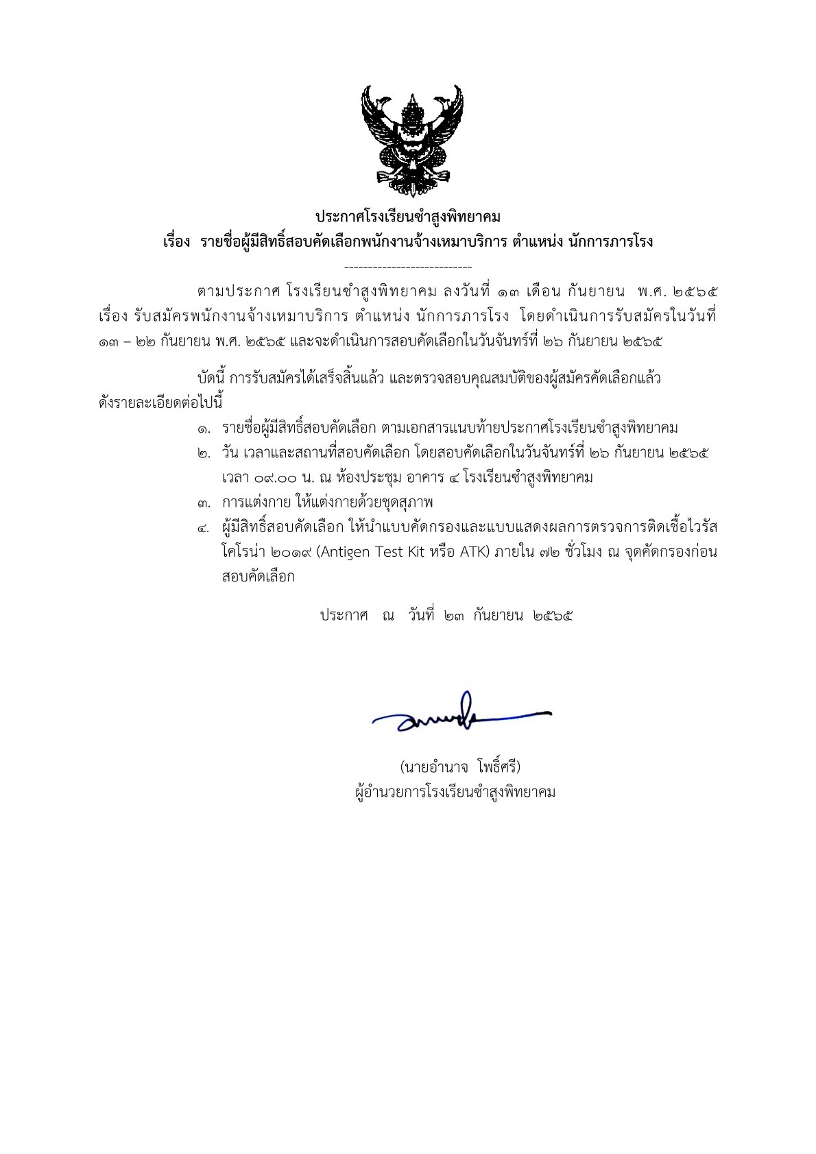 ประกาศโรงเรียนซำสูงพิทยาคม เรื่อง รายชื่อผู้มีสิทธิ์สอบคัดเลือกพนักงานจ้างเหมาบริการ ตำแหน่ง นักการภารโรง