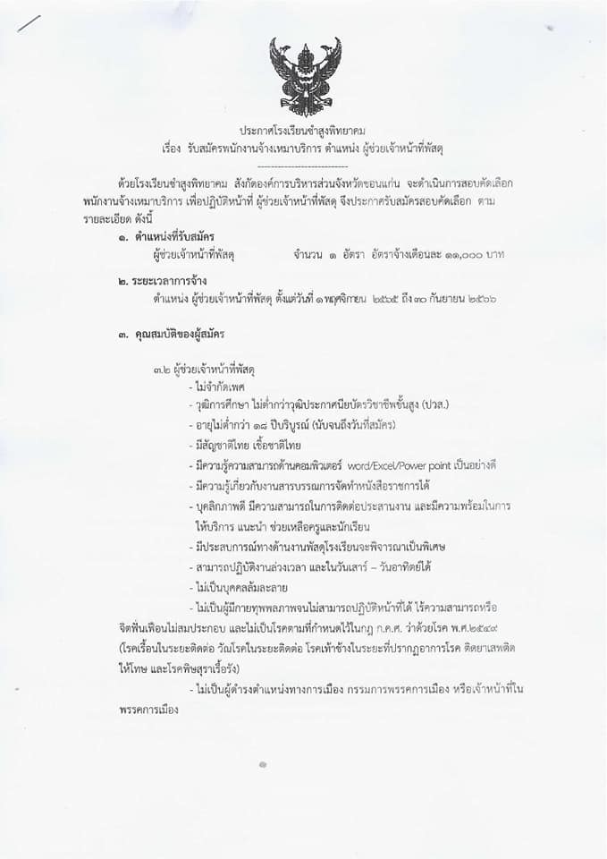 ประกาศโรงเรียนซำสูงพิทยาคม เรื่อง รับสมัครพนักงานจ้างเหมาบริการ ตำแหน่ง ผู้ช่วยเจ้าหน้าที่พัสดุ