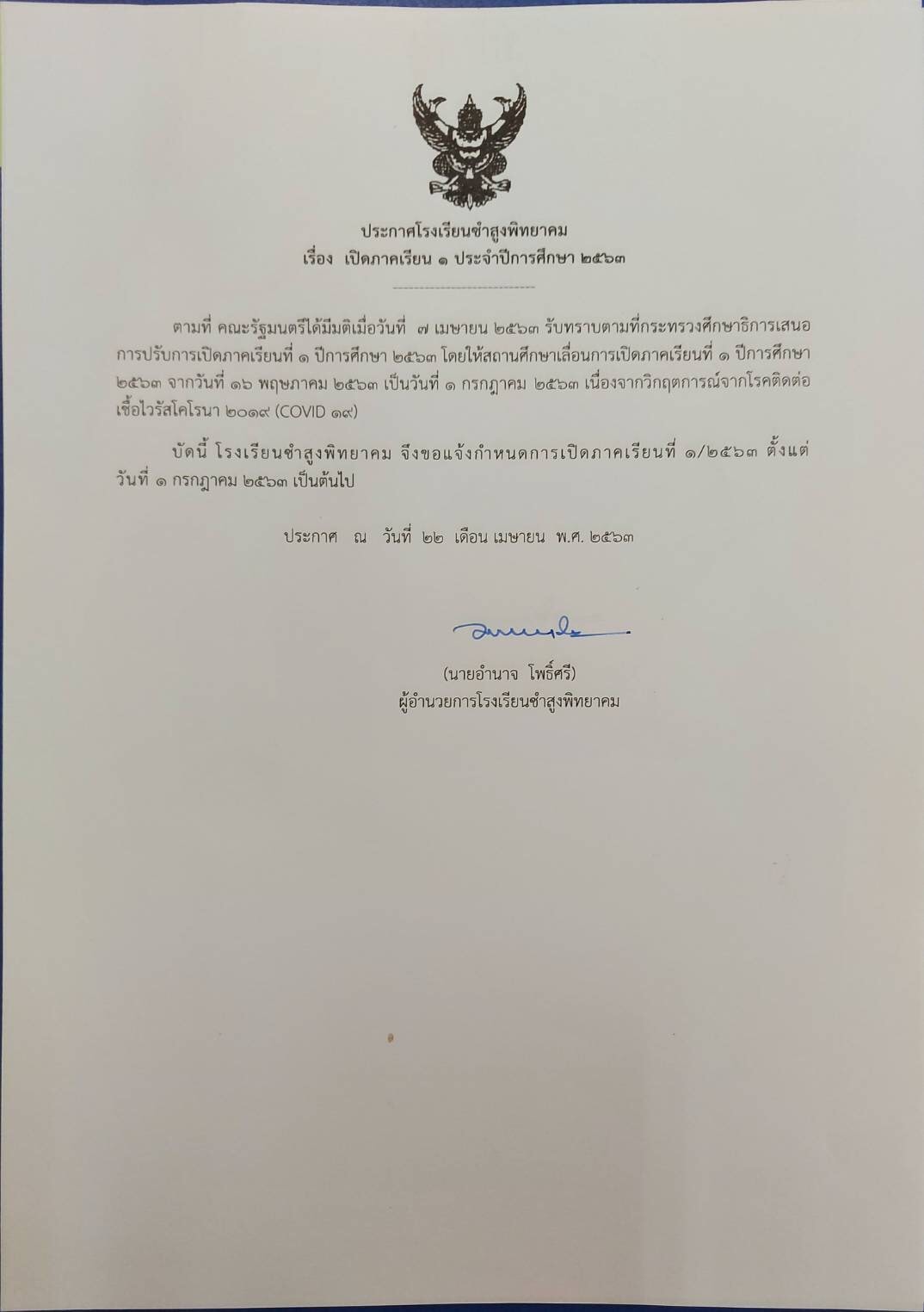 เรื่อง เปิดภาคเรียน 1 ปีการศึกษา 2563