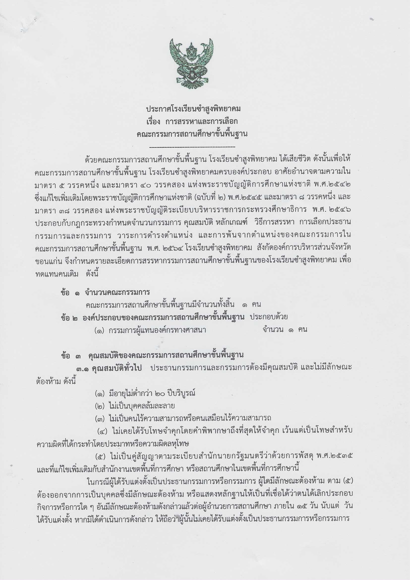 ประกาศโรงเรียนซำสูงพิทยาคม เรื่อง การสรรหาและการเลือกคณะกรรมการสถานศึกษาขั้นพื้นฐาน ตำแหน่งกรรมการผู้แทนองค์กรทางศาสนา