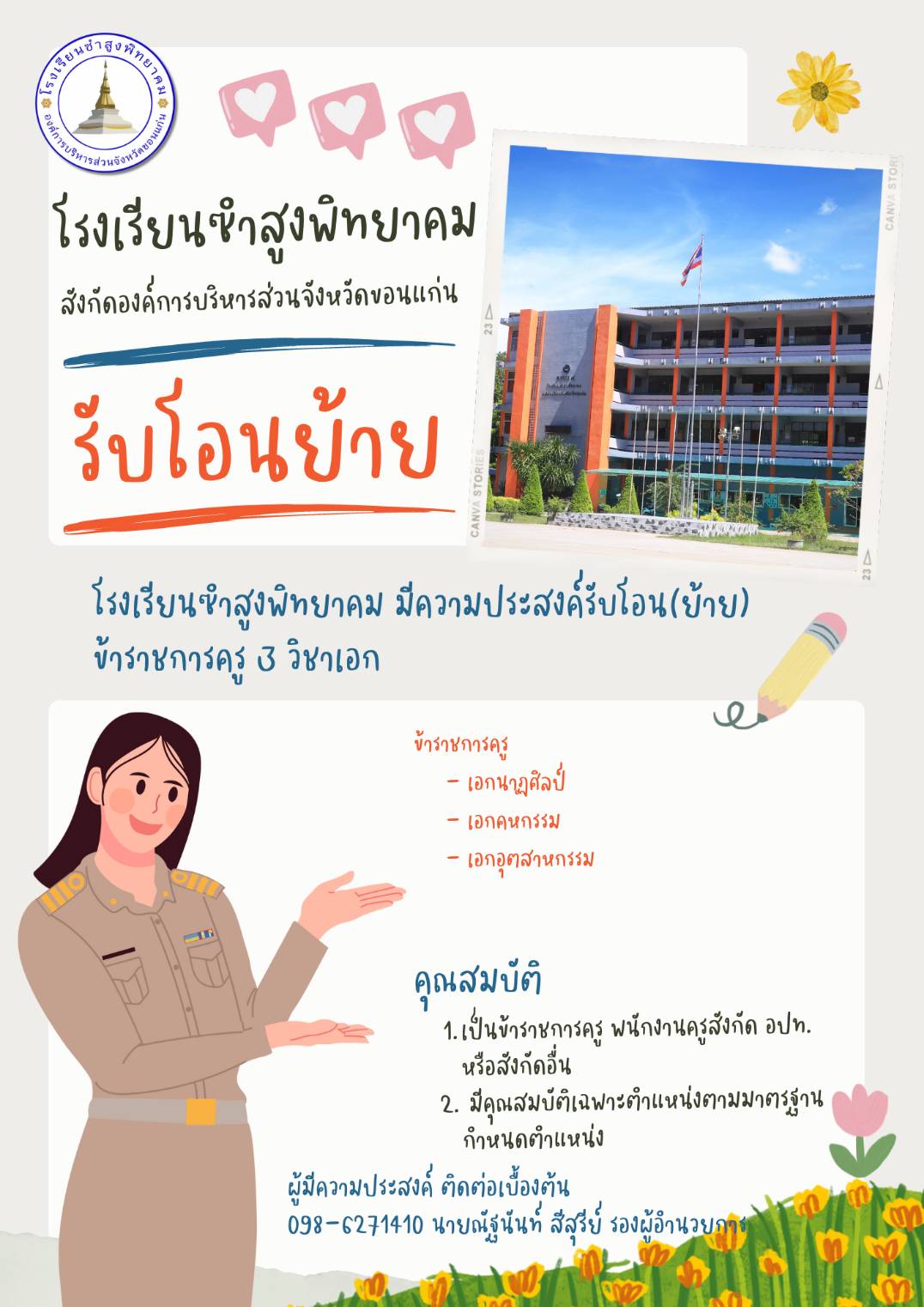 ประชาสัมพันธ์ โรงเรียนซำสูงพิทยาคม เรื่อง การรับโอนย้ายข้าราชการครู