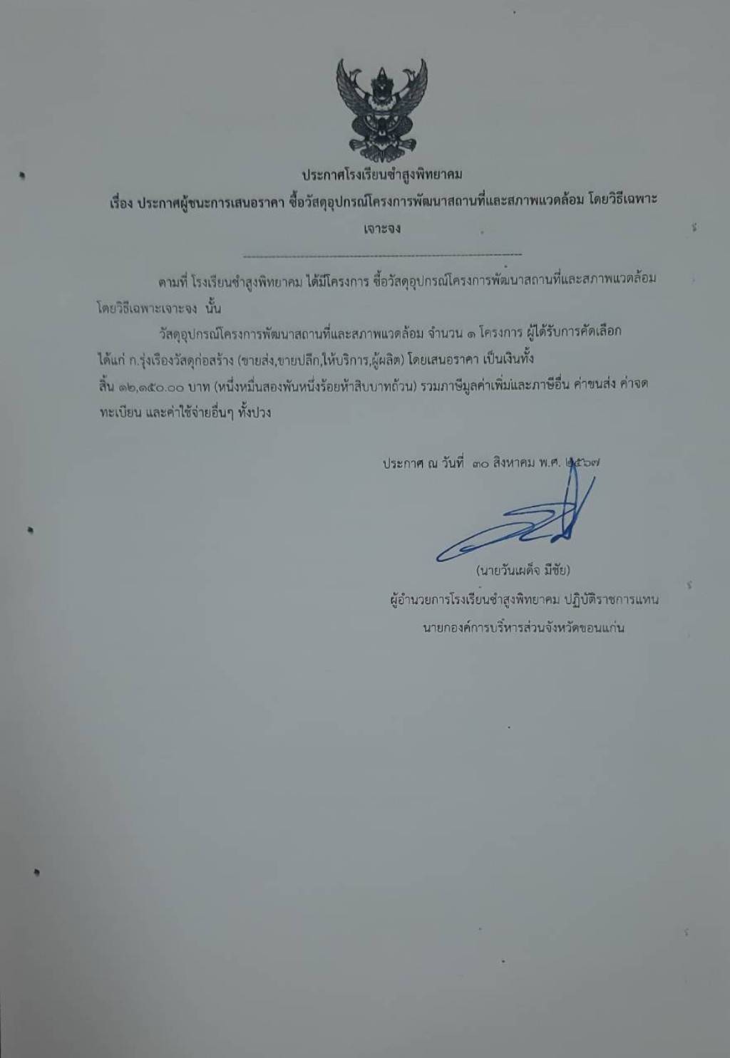 ประกาศโรงเรียนซำสูงพิทยาคม เรื่องประกาศผู้ชนะการเสนอราคา ซื้อวัสดุอุปกรณ์โครงการพัฒนาสถานที่และสภาพแวดล้อมโดยวิธีเฉพาะเจาะจง