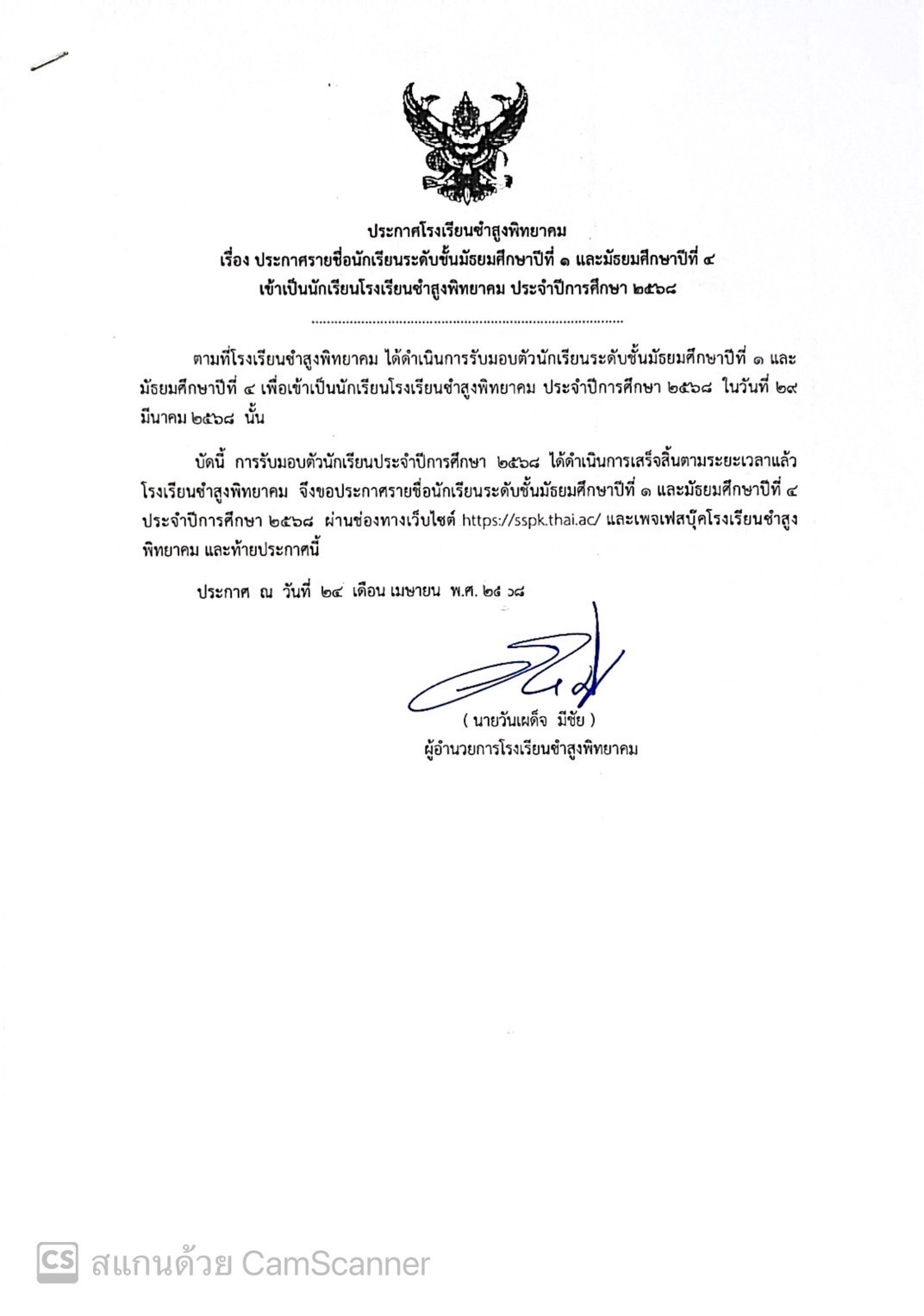 ประกาศโรงเรียนซำสูงพิทยาม เรื่อง ประกาศรายชื่อนักเรียนระดับชั้นมัธยมศึกษาปีที่ ๑และมัธยมศึกษาปีที่ ๔ เข้าเป็นนักเรียนโรงเรียนซำสูงพิทยาคม ประจำปีการศึกษา ๒๕๖๘