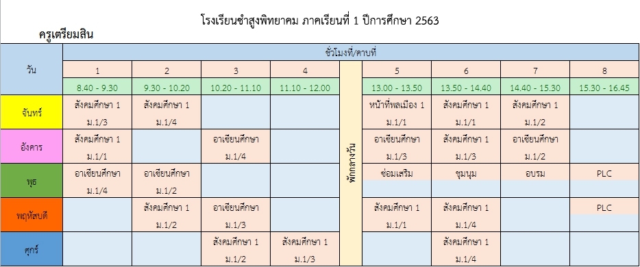 ชื่อวิชา ห้องเรียน รหัสเข้าห้องเรียน หมายเหตุ