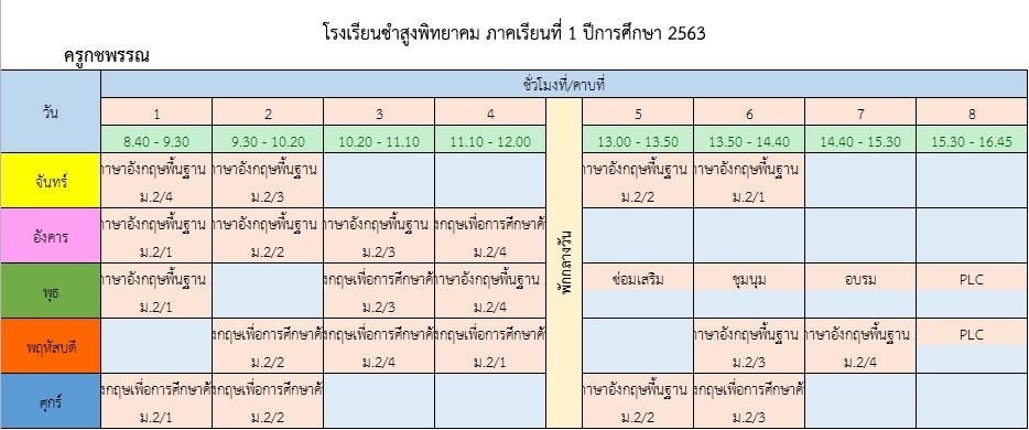 ชื่อวิชา ห้องเรียน รหัสเข้าห้องเรียน หมายเหตุ